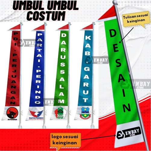 Di MalikaBendera, kami menyediakan layanan pembuatan umbul-umbul custom dengan cetakan full color yang vibrant dan berkualitas tinggi. Anda dapat memilih opsi finishing yang sesuai, seperti tali, selongsong tiang, atau lubang mata ayam, untuk memberikan kesan yang lebih rapi dan praktis. Pesan umbul-umbul custom Anda sekarang untuk acara atau promosi yang lebih menarik!